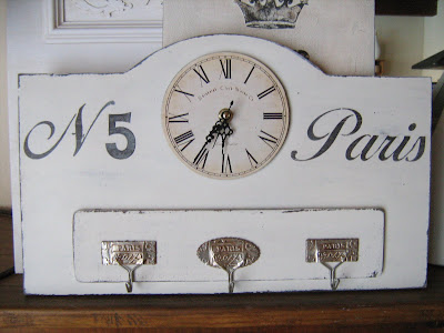 Hija mía, lo que trabajas, cada día nos sorprendes con algún trabajo nuevo y cada cual más bonito, se me ponen los dientes largos, larguísimos, este perchero con reloj es otra preciosidad, te ha quedado divino de la muerte mortal.