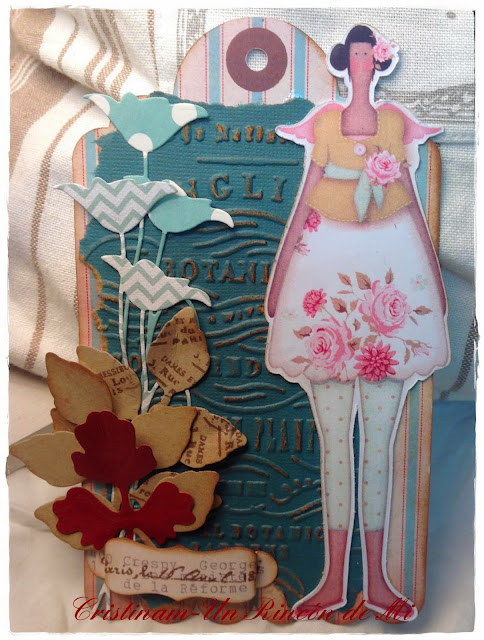 Luego ya sólo queda poner los detalles de decoración a la letra que en mi caso es la figura hecha con sellos y distintos troqueles cortados con mi Big Shot....