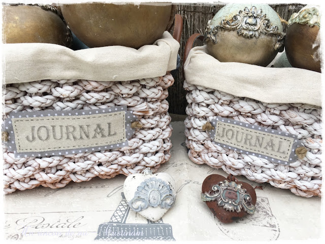 Os pongo fotos de los cestos terminados , he puesto las bolas que he decorado estas semanas y que quedan ideal con la decoración de los cestos.